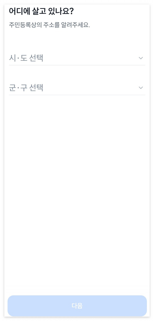 2. 먼저 개인, 소상공인, 법인 중에서 해당 되는 카테고리를 선택한 다음, 거주 지역을 선택합니다.